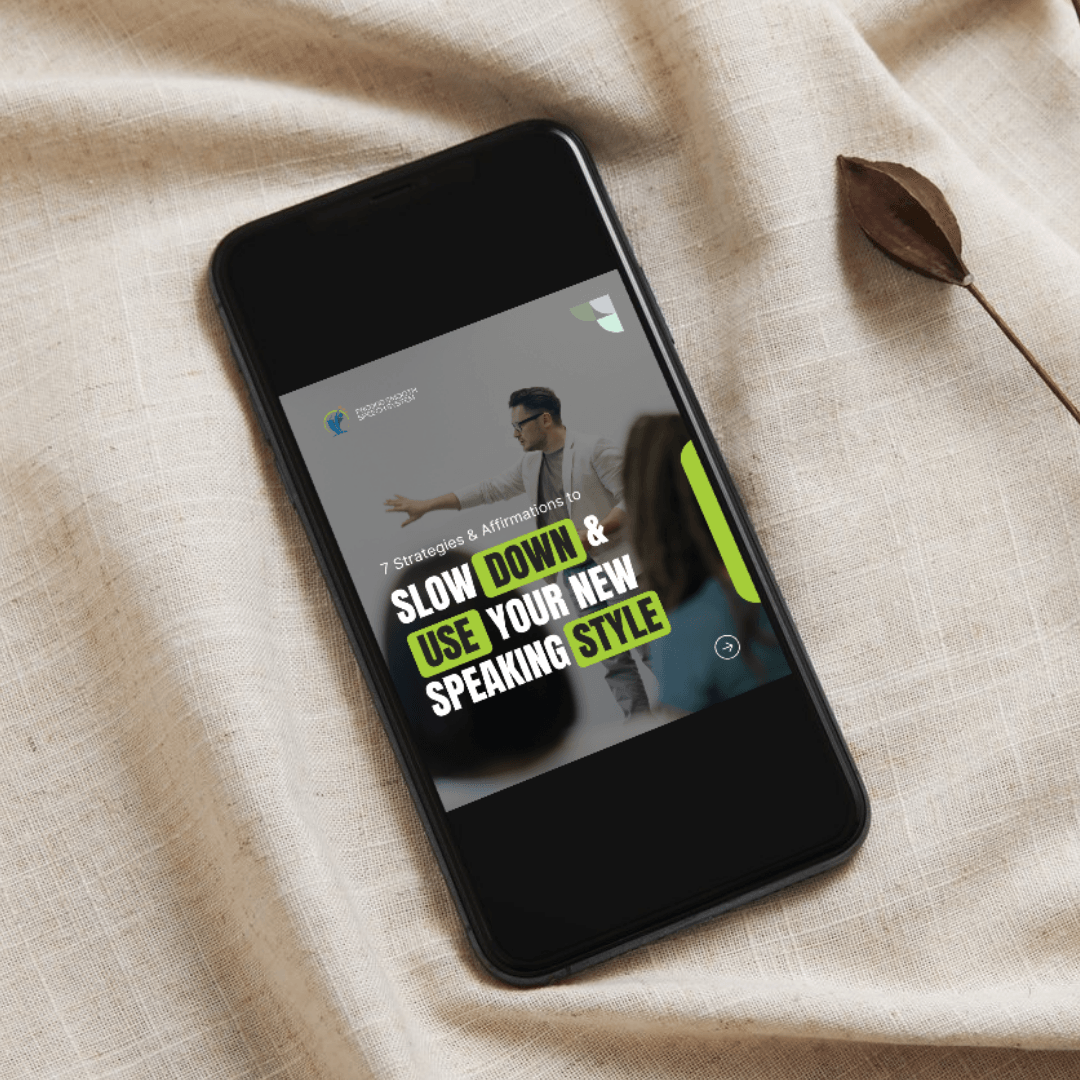 Benefits: overcome speech anxiety, reduce worry, slow down your speech, and speak clearly and confidently in any situation